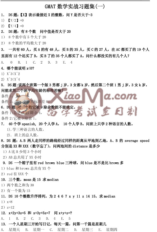 GMAT数学实战习题集(1)
